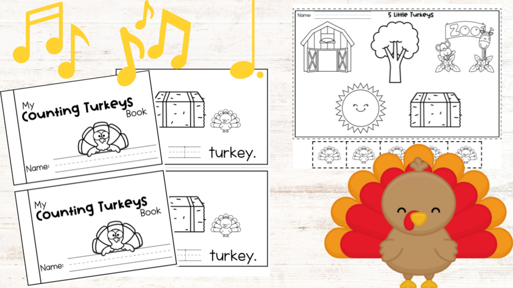 ๐ถThis activity was designed to be paired with the Five Little Turkeys song by Zebra Nursery Rhymes and will have kids singing, counting, reenacting the story, and learning at the same time!